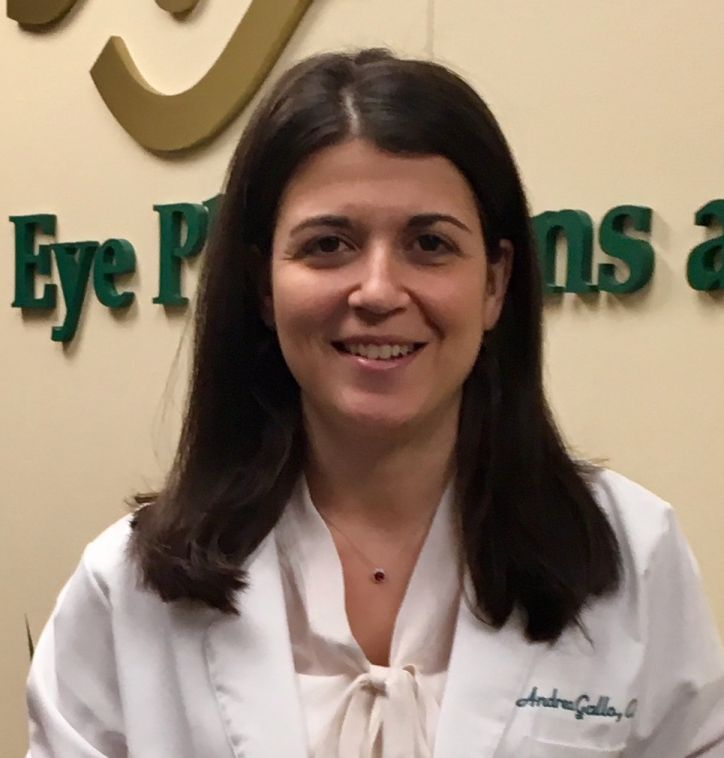 The newest pair of eyes at Eye Physicians and Surgeons belongs to a name you have probably come across before. Optometrist Dr. Andrea Gallo joined our team in November of 2016. Her journey to this point included earning her BS degree from the University of Delaware with a major in chemistry. She worked as a molecular technician performing genetic identification before going to the Pennsylvania College of Optometry at Salus University to earn her degree of Doctor of Optometry. Dr. Gallo did her residency at Perry Point VA Medical Center. We salute Dr. Gallo as she has served as Captain in the Army Reserve.